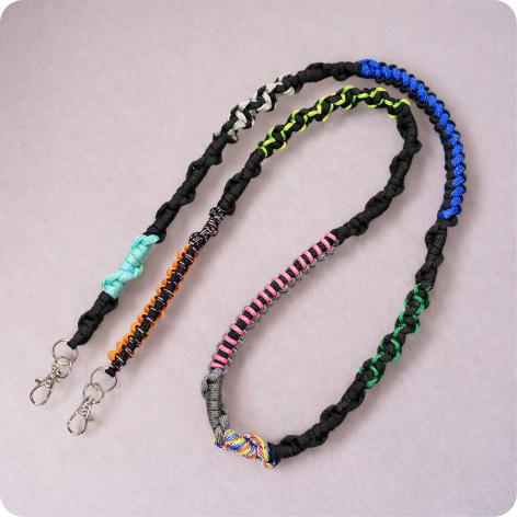 - Design technique : Un assemblage unique de différents types de tressages en paracorde, créant un relief et un style visuel incomparable.